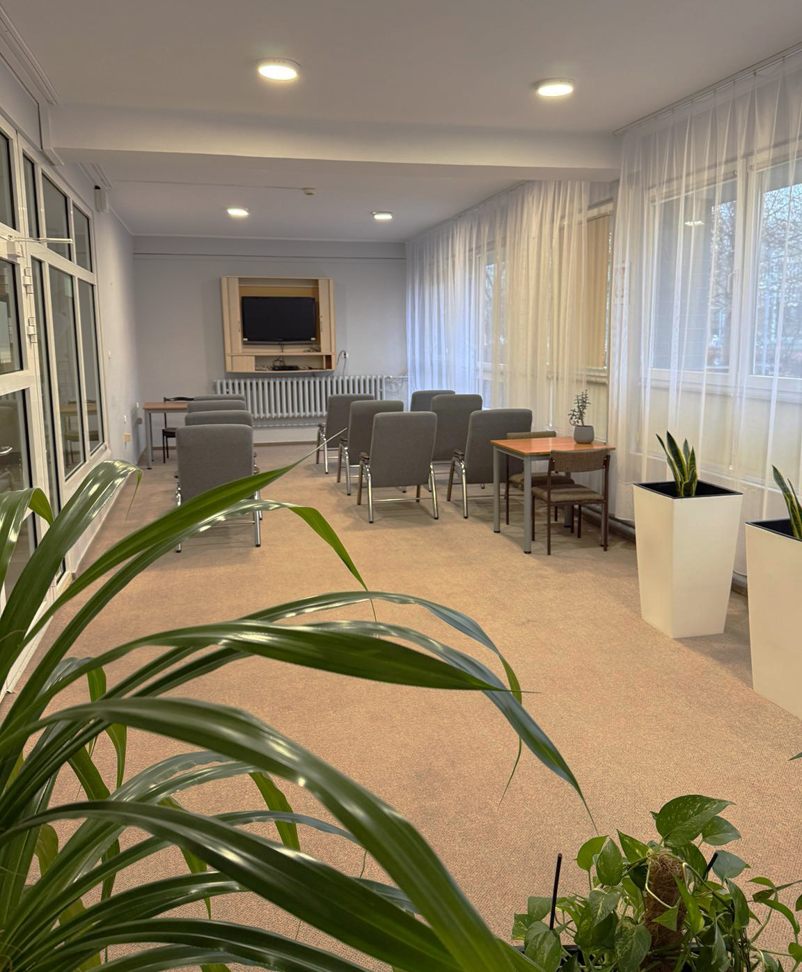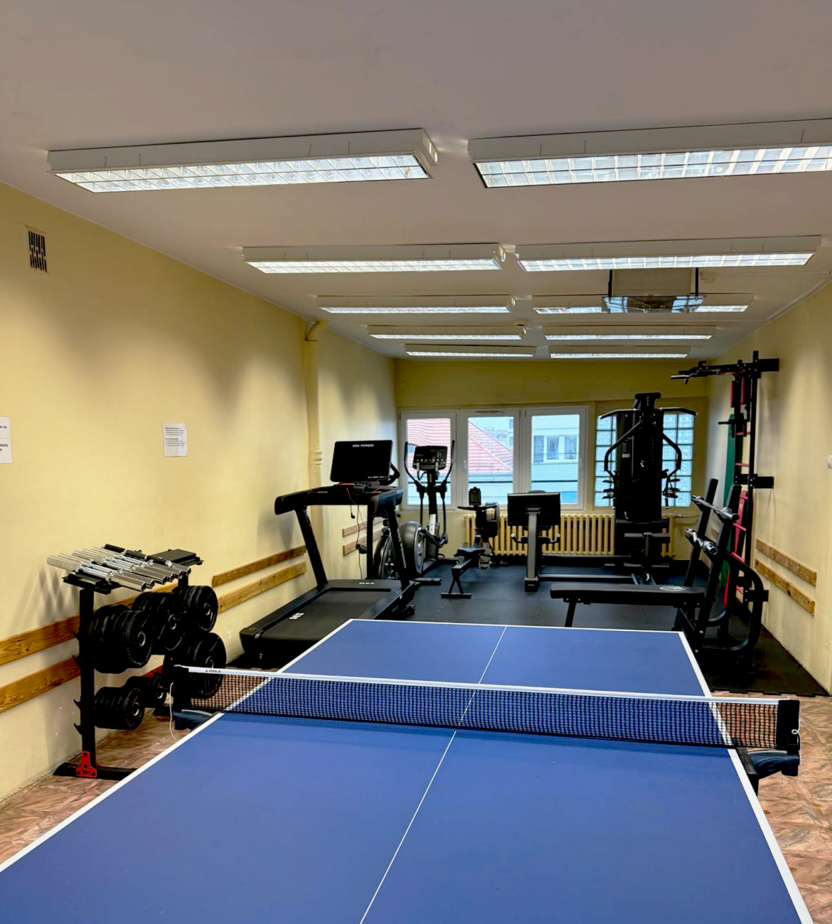 Na parterze budynku znajduje się sala telewizyjna, na V piętrze sala do nauki oraz sala sportowa.