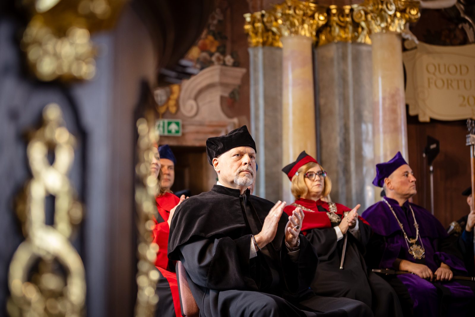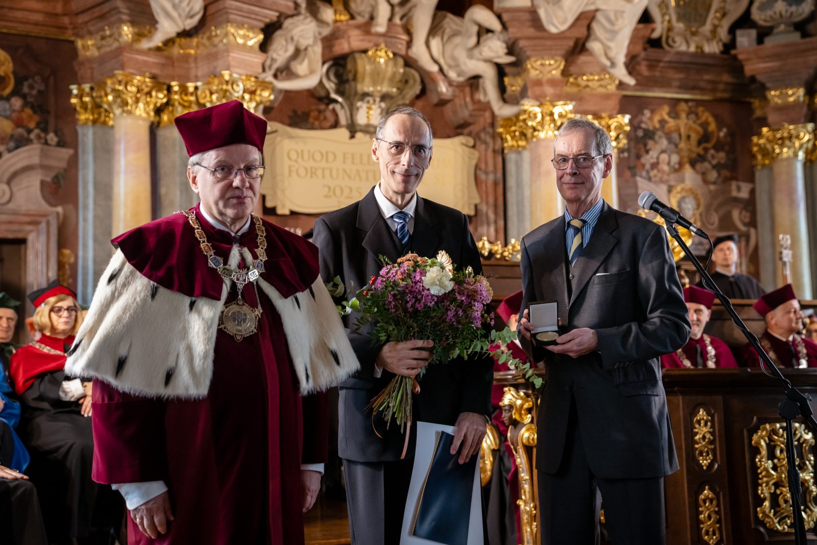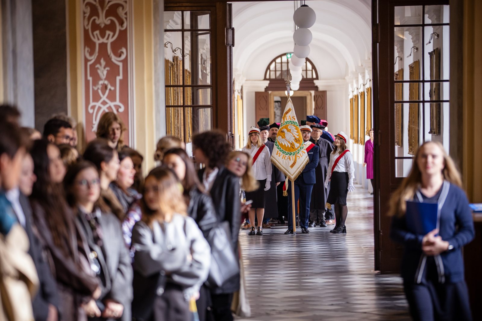 The ceremony was attended by this year’s award recipients (the Heisig Prize and the Princess Jadwiga of Silesia Prize), friends of the University of Wrocław, including representatives of national, regional, municipal and local authorities, churches, diplomatic missions, academic institutions, public life, as well as partner organisations and enterprises, alongside University staff, students, and doctoral candidates who formally joined the University community. The gathered guests were welcomed by Katarzyna Górowicz-Maćkiewicz, the University’s press officer.