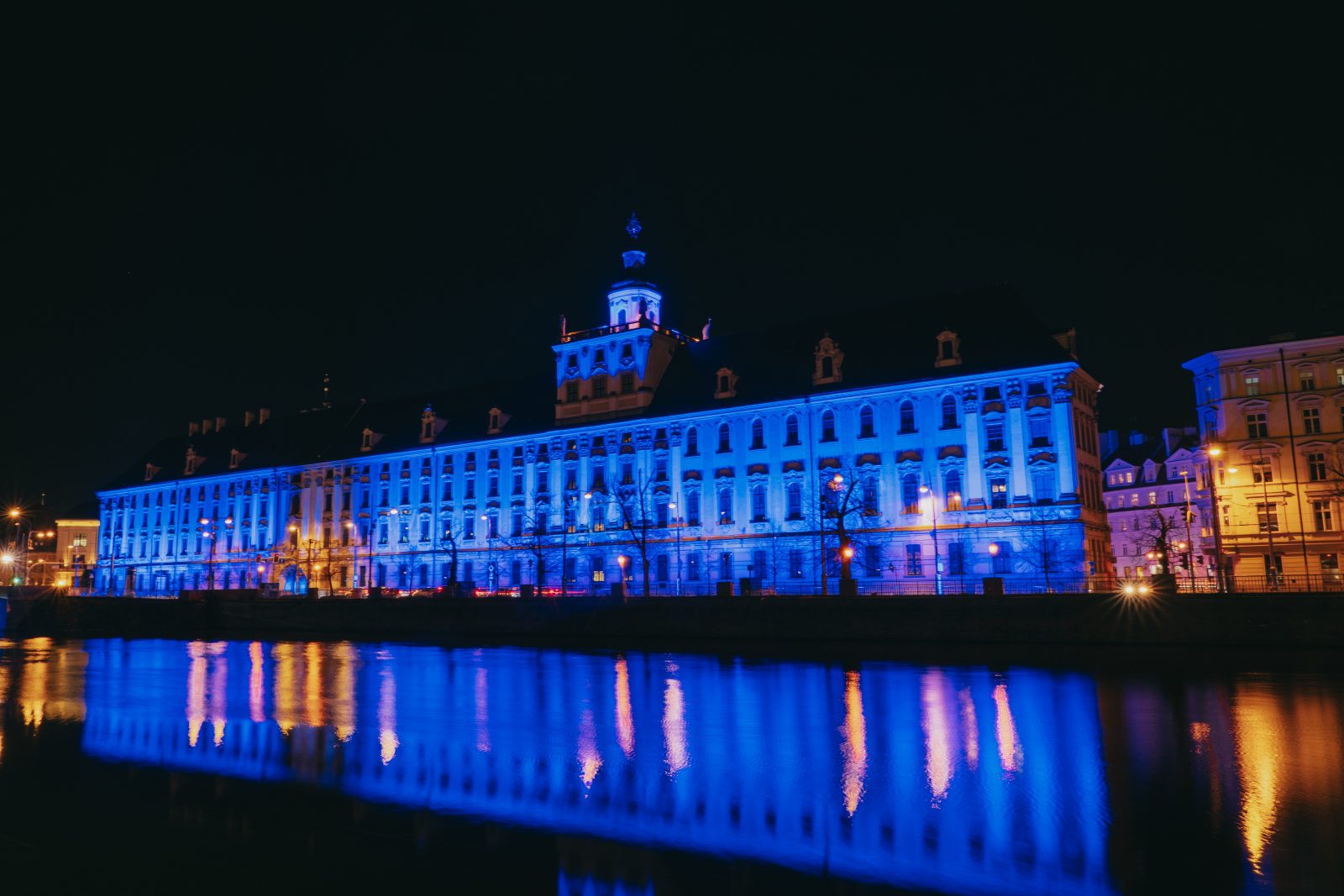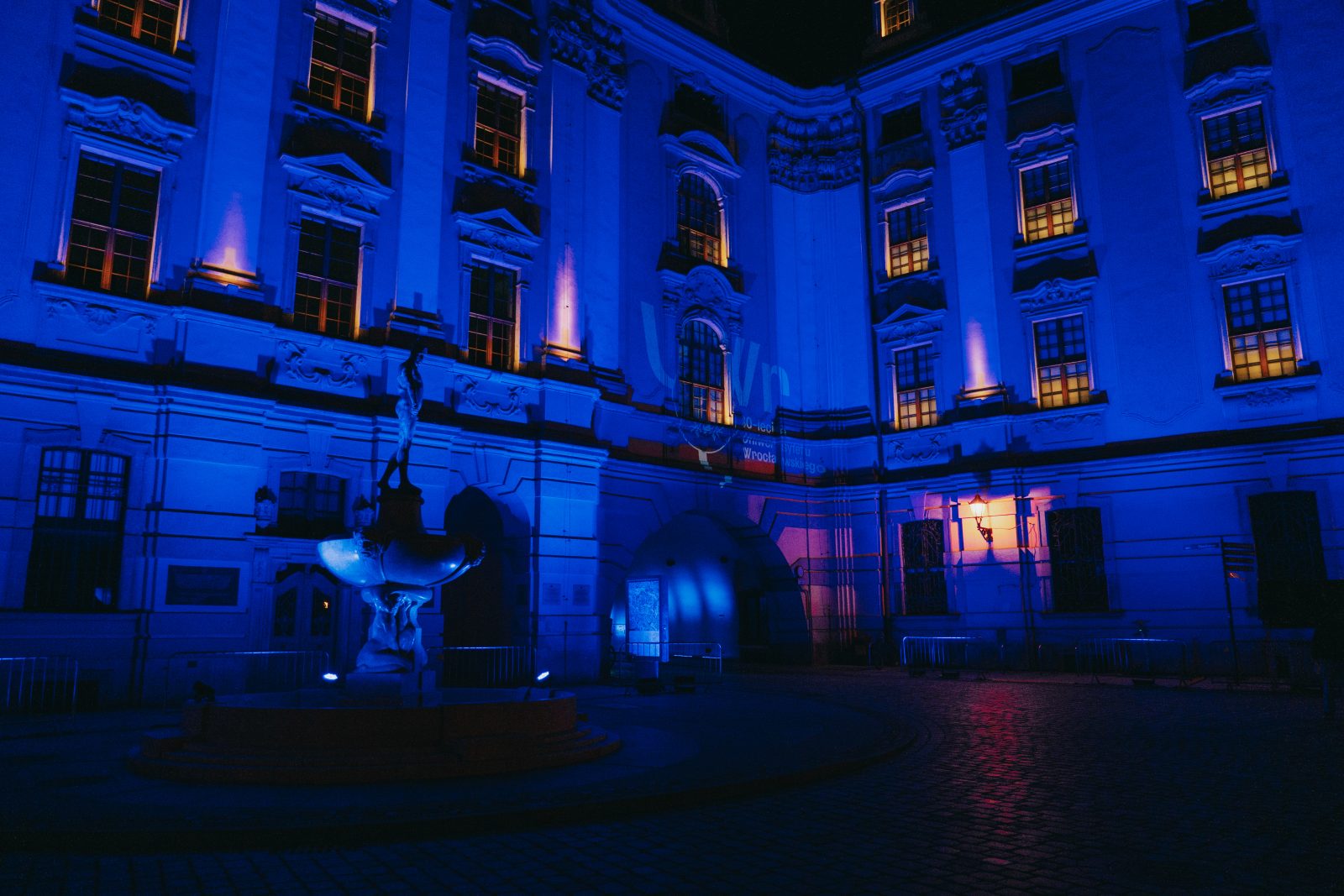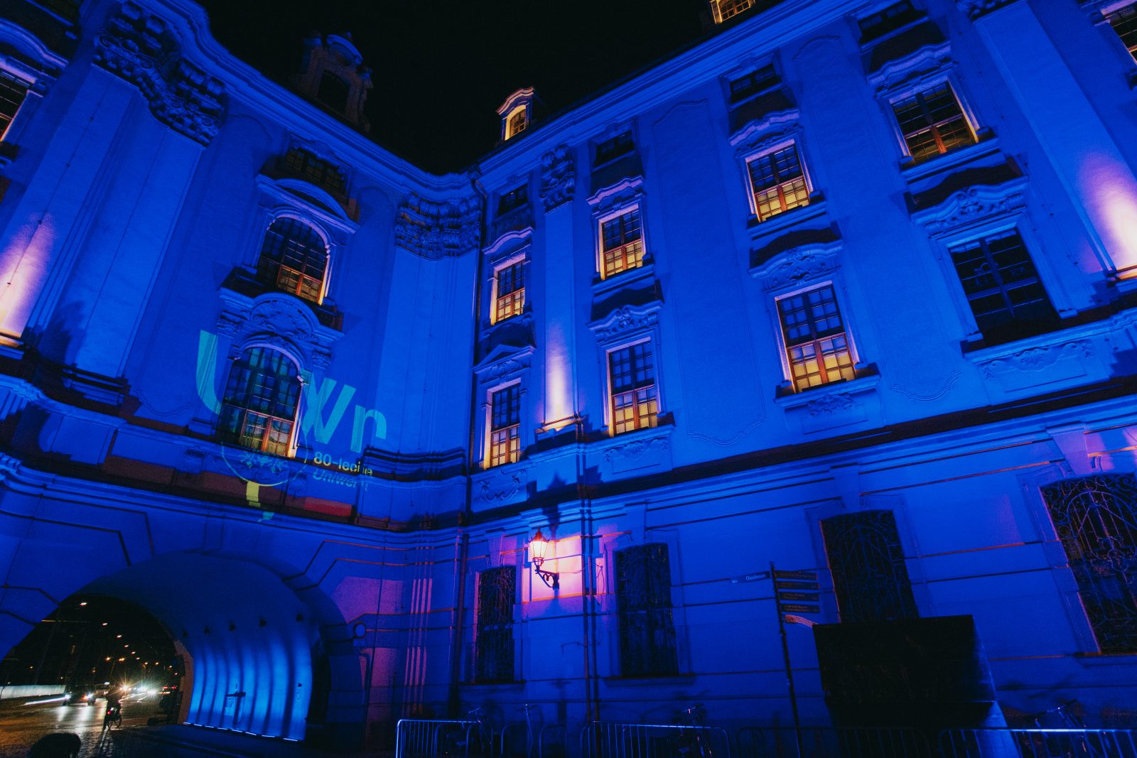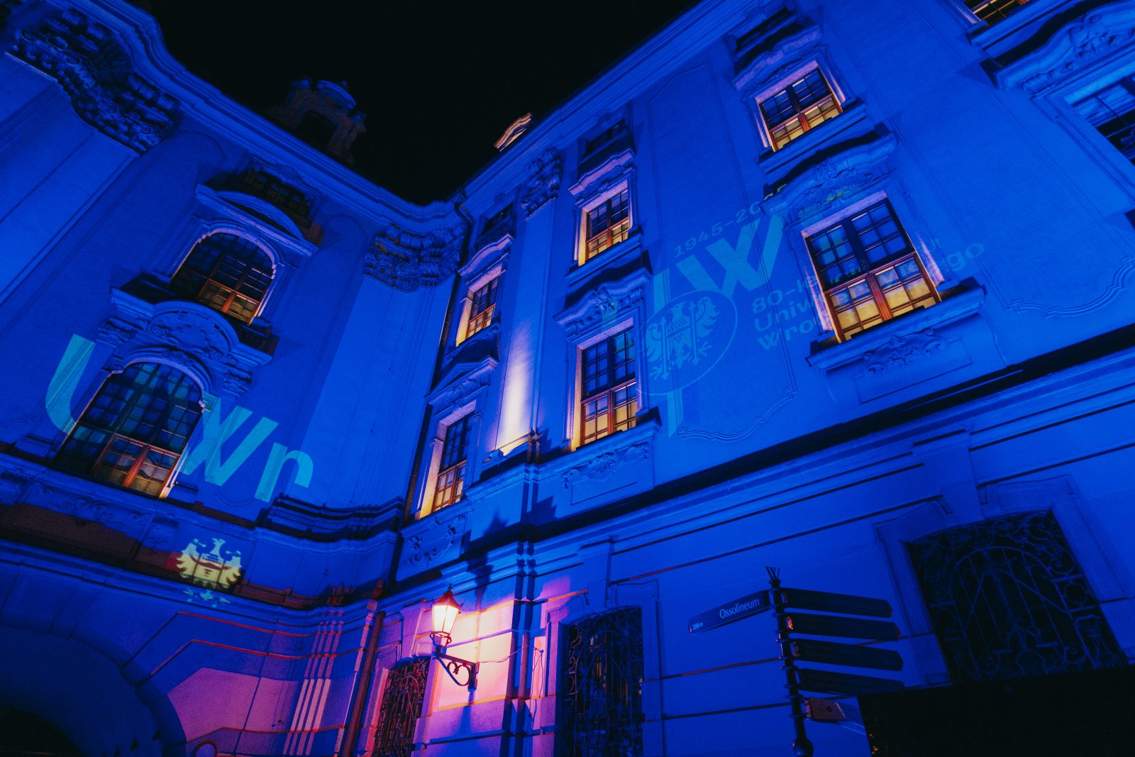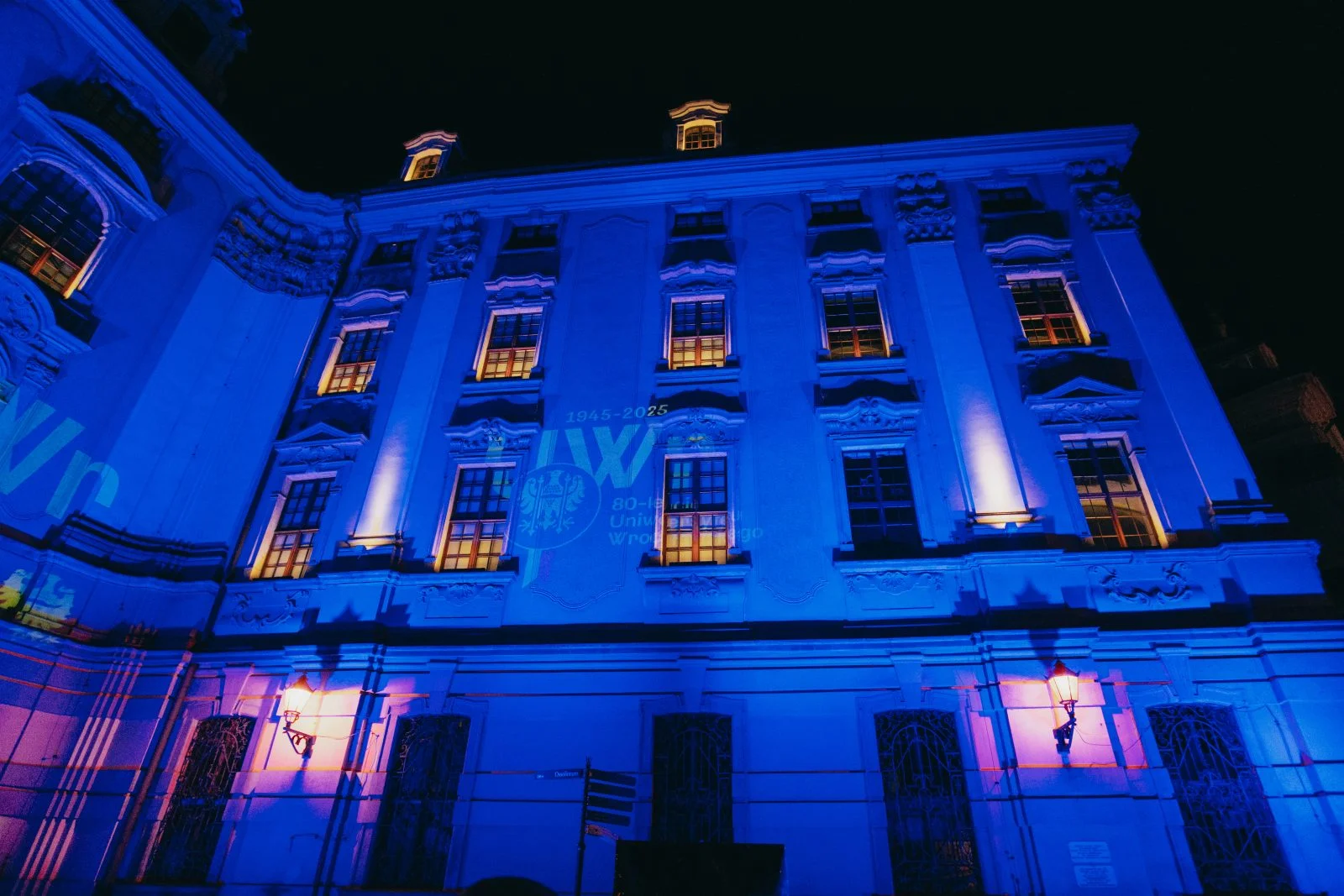 Jedną z wielu atrakcji, jakie Uniwersytet Wrocławski przygotował z okazji 80-lecia polskiej nauki we Wrocławiu, była iluminacja gmachu głównego uczelni i rozświetlenie go na niebiesko – czyli na oficjalny kolor UWr, zwany błękitem uniwersyteckim.