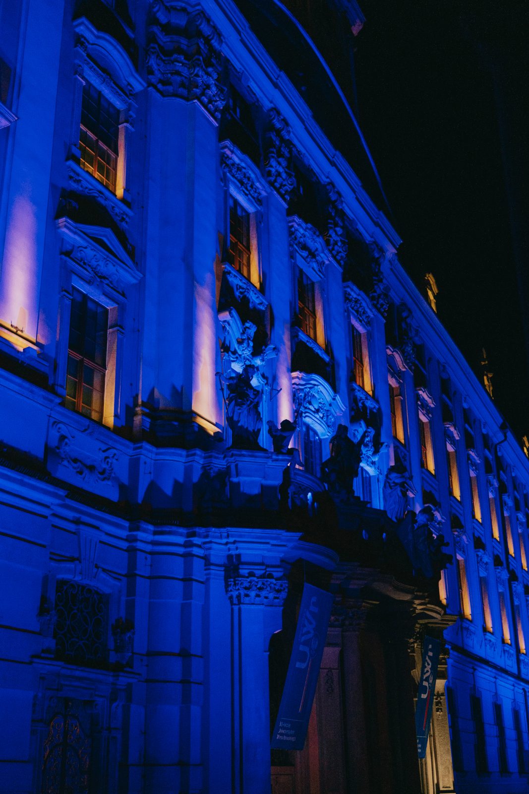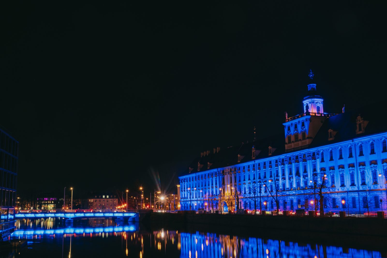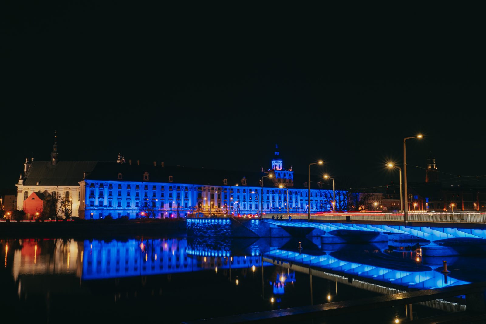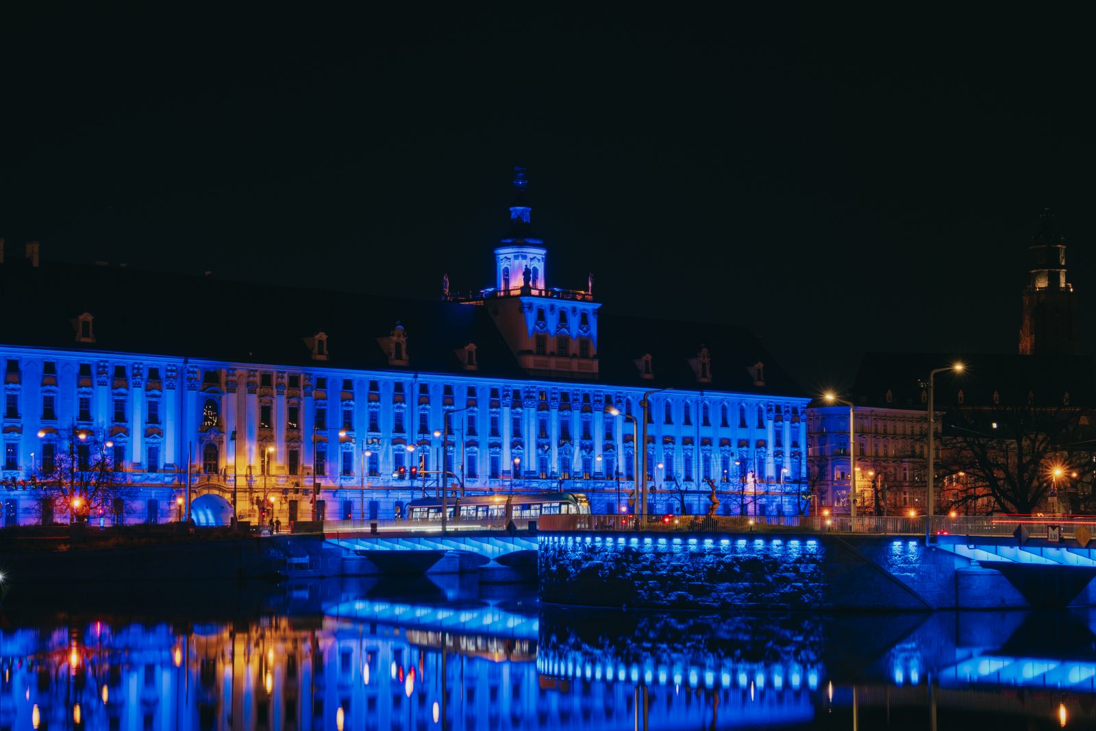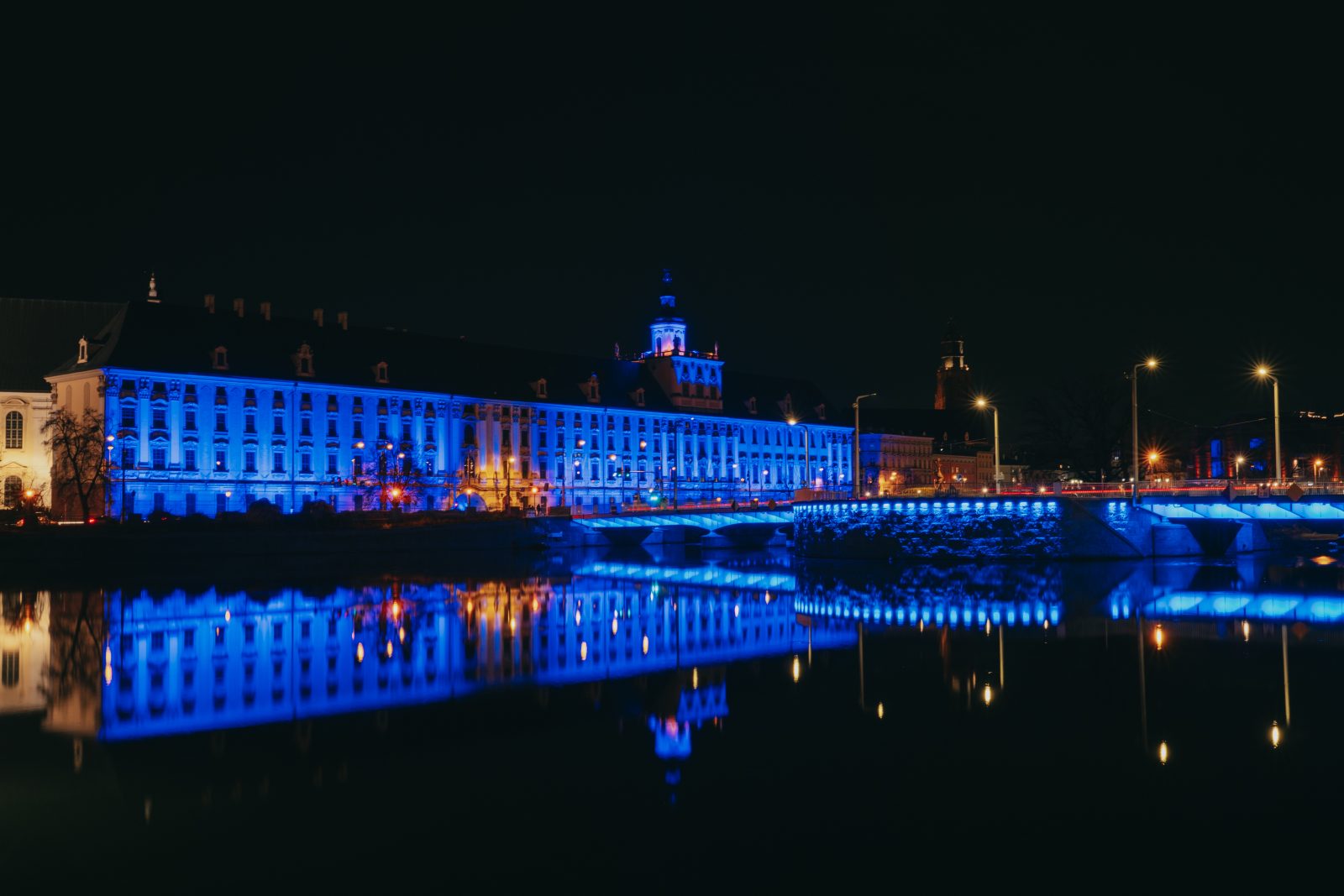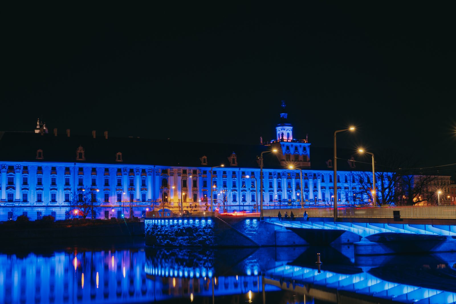 Jedną z wielu atrakcji, jakie Uniwersytet Wrocławski przygotował z okazji 80-lecia polskiej nauki we Wrocławiu, była iluminacja gmachu głównego uczelni i rozświetlenie go na niebiesko – czyli na oficjalny kolor UWr, zwany błękitem uniwersyteckim.