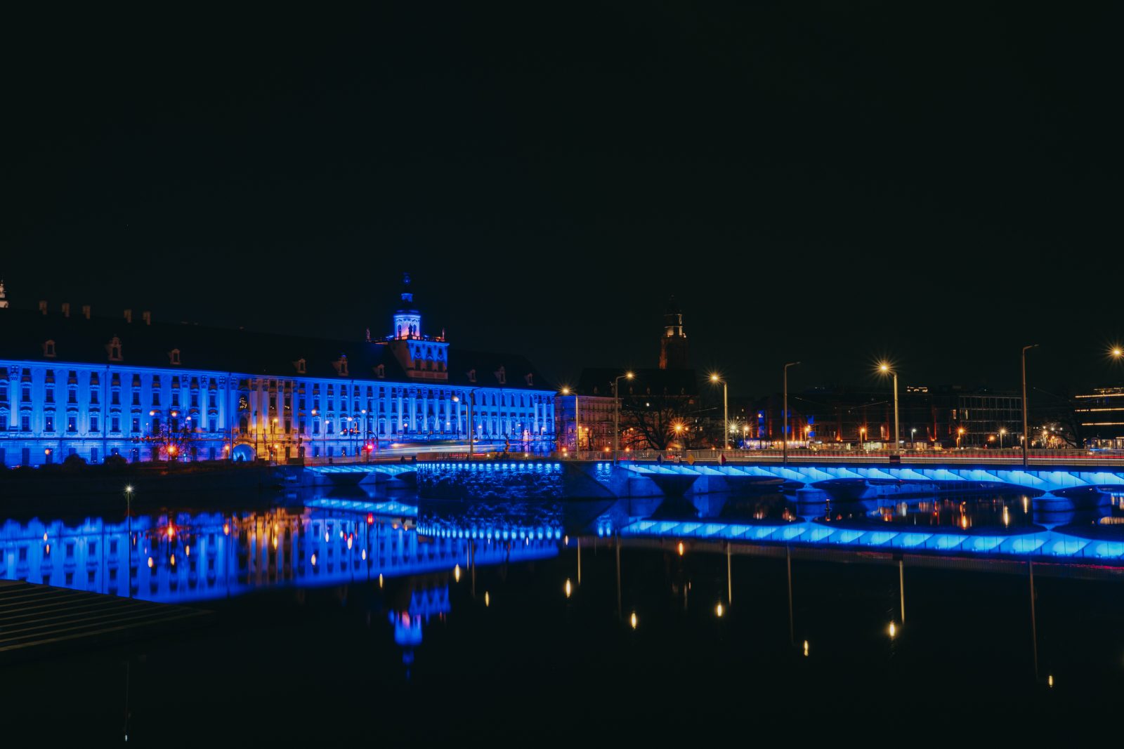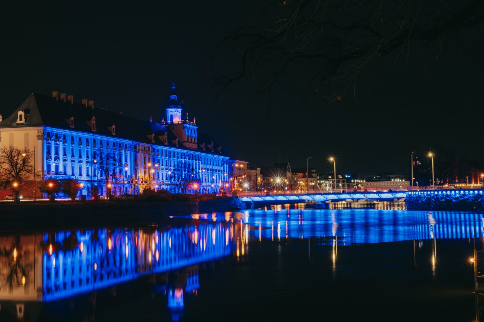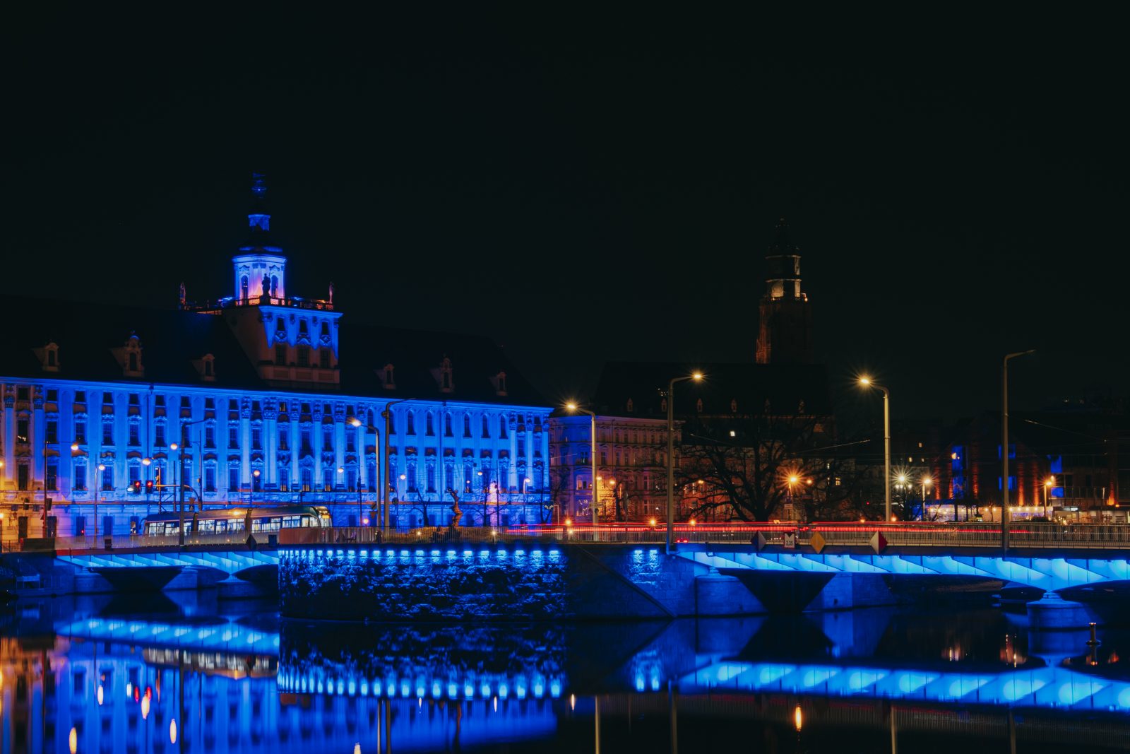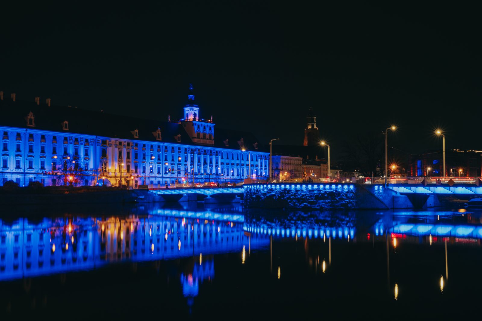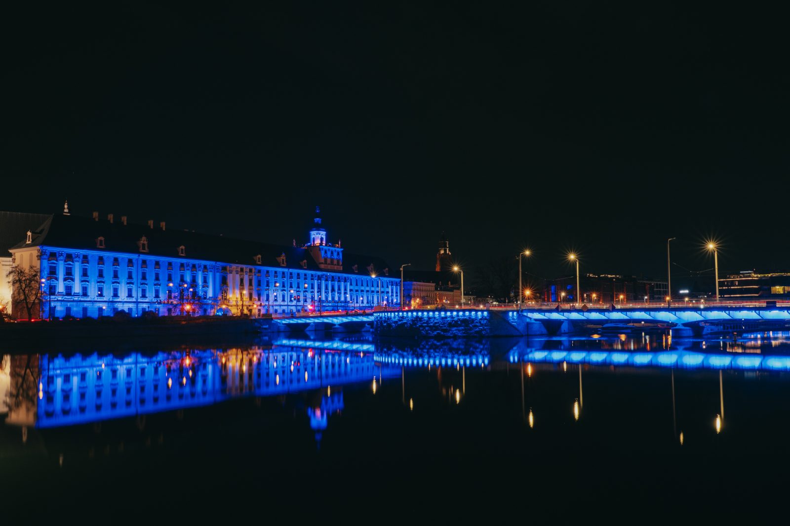 Jedną z wielu atrakcji, jakie Uniwersytet Wrocławski przygotował z okazji 80-lecia polskiej nauki we Wrocławiu, była iluminacja gmachu głównego uczelni i rozświetlenie go na niebiesko – czyli na oficjalny kolor UWr, zwany błękitem uniwersyteckim.
