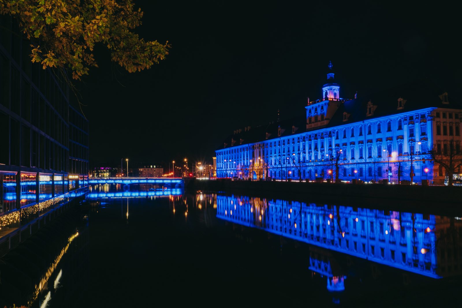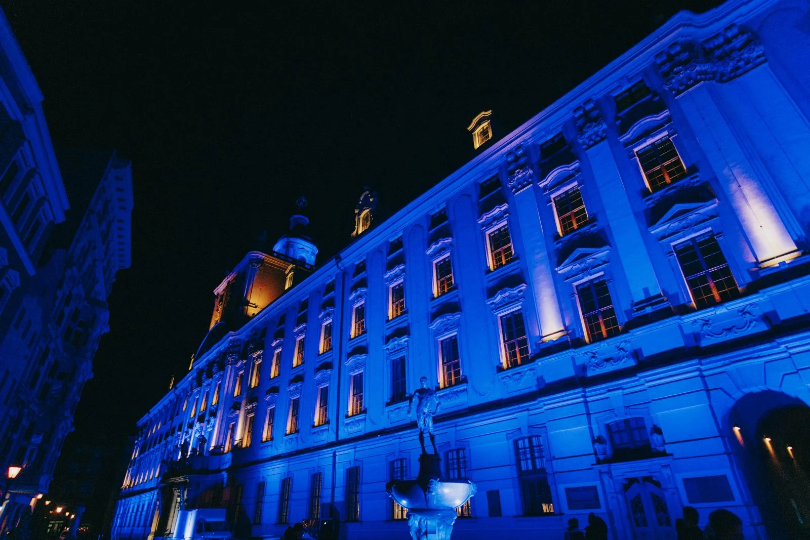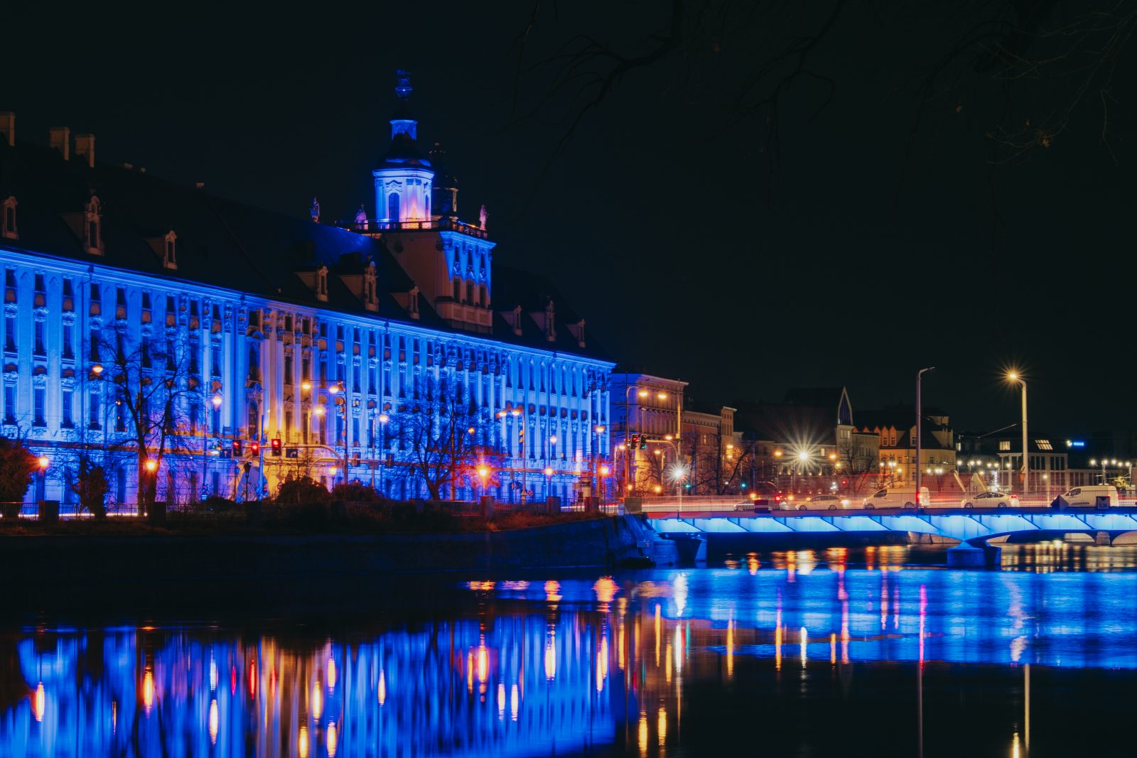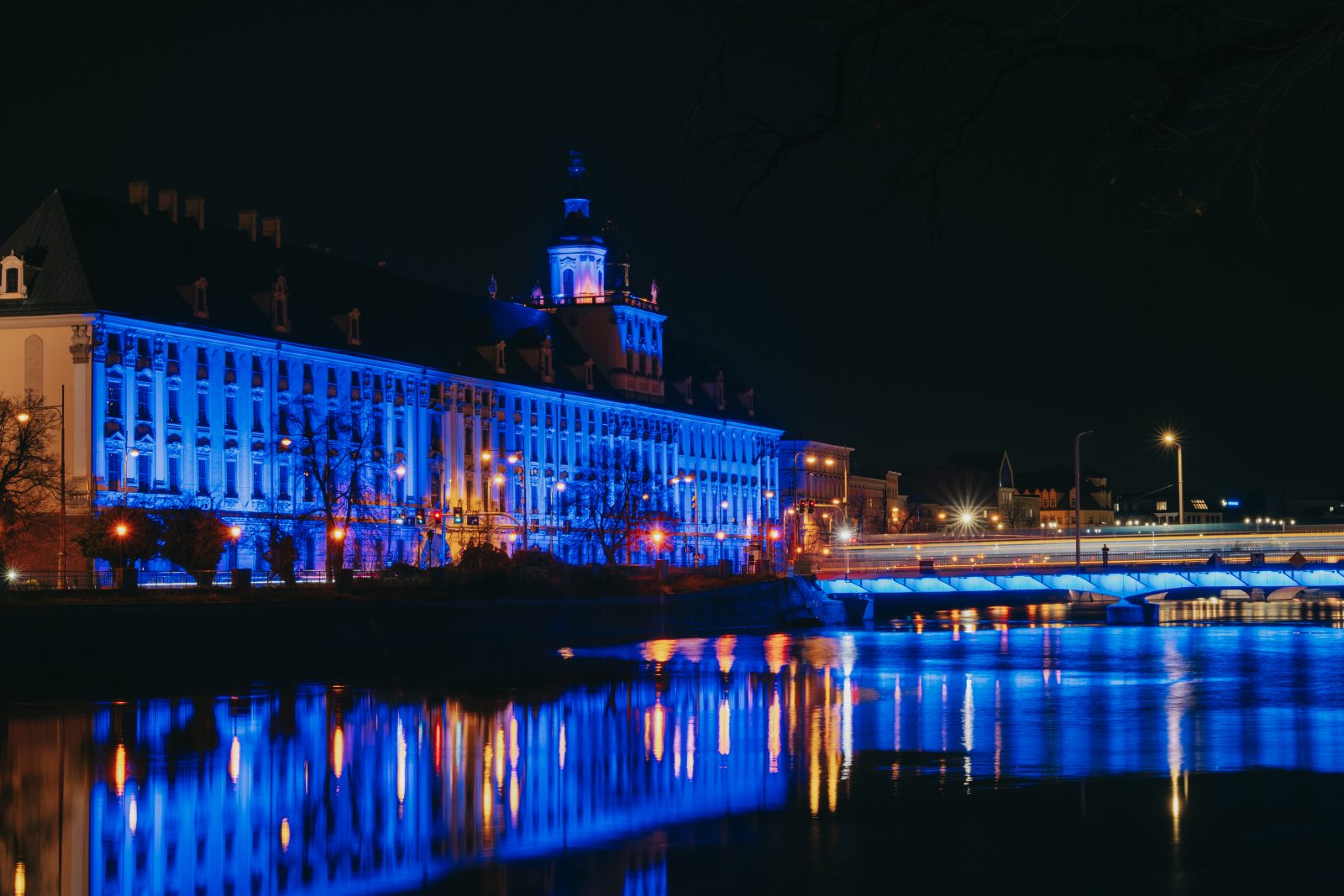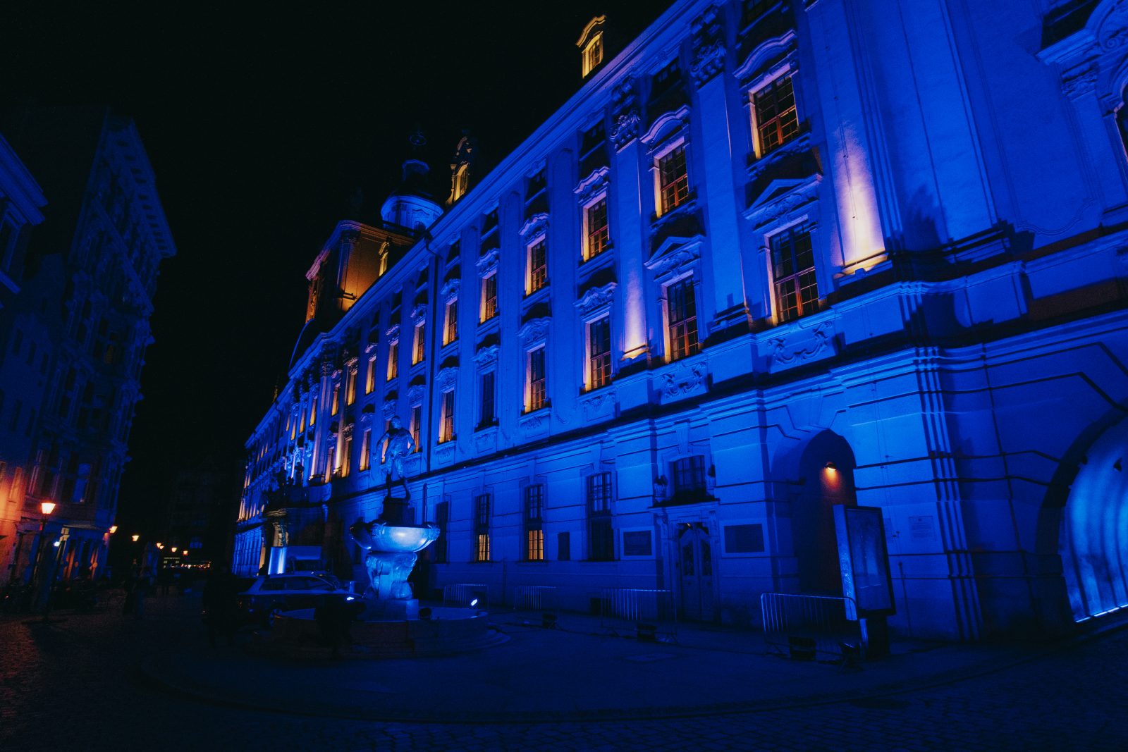 Jedną z wielu atrakcji, jakie Uniwersytet Wrocławski przygotował z okazji 80-lecia polskiej nauki we Wrocławiu, była iluminacja gmachu głównego uczelni i rozświetlenie go na niebiesko – czyli na oficjalny kolor UWr, zwany błękitem uniwersyteckim.