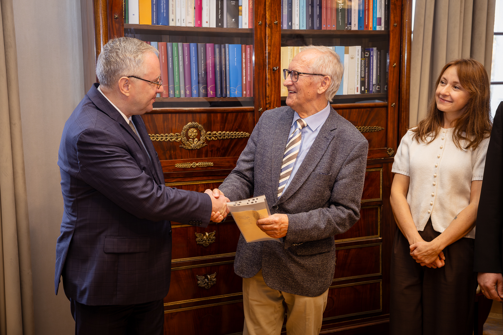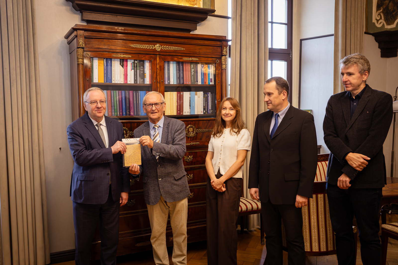 Swoje odręczne zapiski, czyli pożegnalny list od prof. Hartmana – prof. Zbigniew Jurek przekazał 5 listopada 2025 r. rektorowi UWr prof. Robertowi Olkiewiczowi.