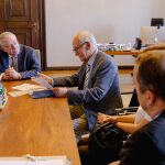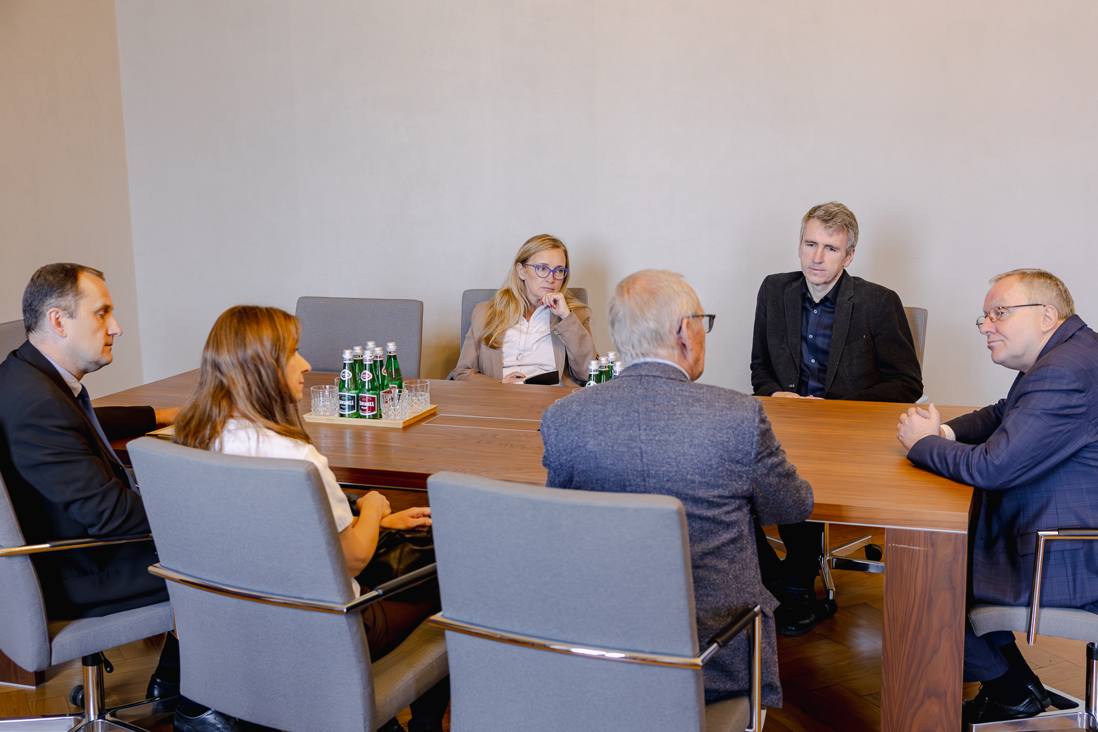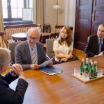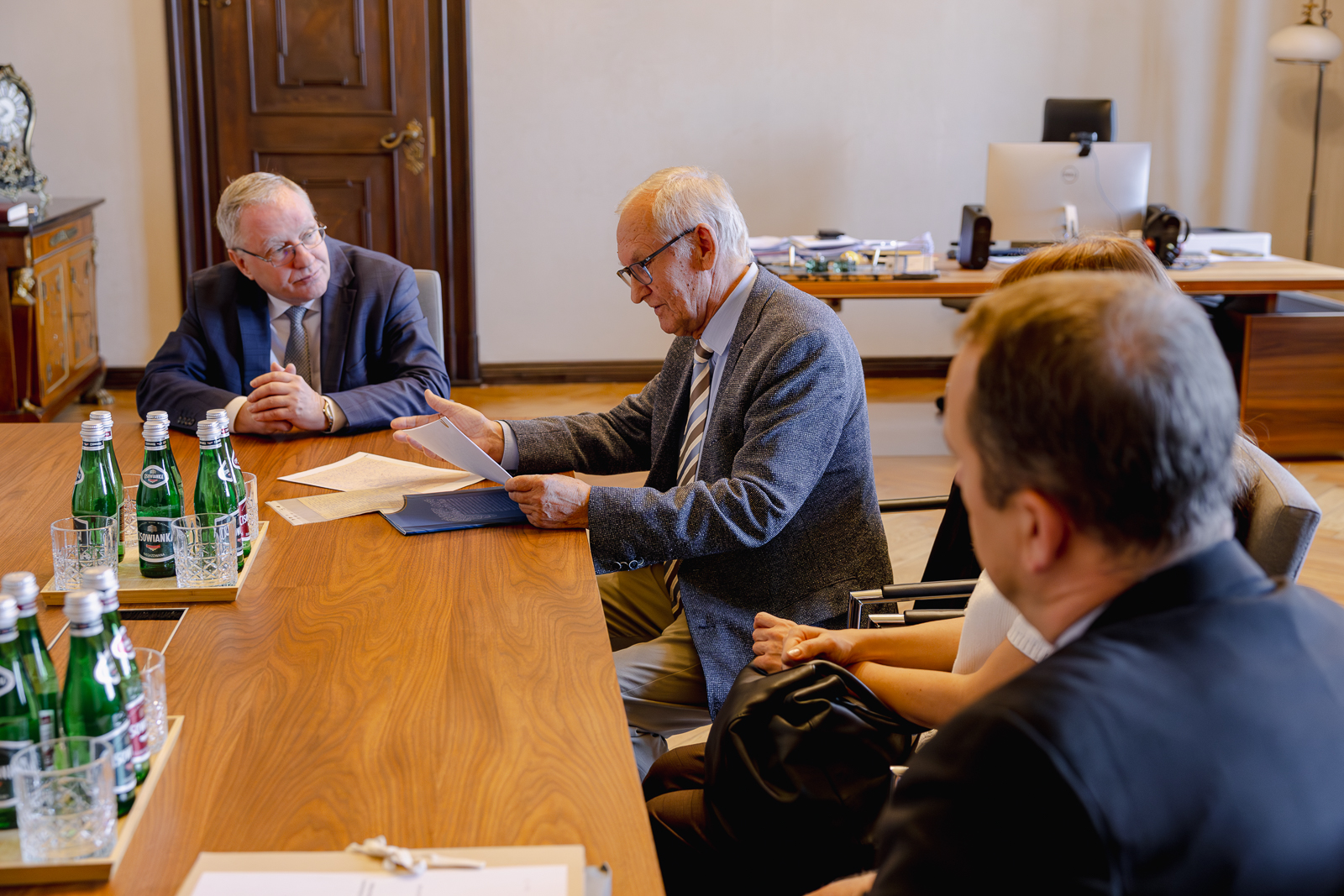 W spotkaniu rektora prof. Roberta Olkiewicza z prof. Zbigniewem Jurkiem uczestniczyli również dziekan Wydziału Matematyki i Informatyki UWr prof. Dariusz Buraczewski oraz rzeczniczka prasowa uczelni Katarzyna Górowicz-Maćkiewicz.
