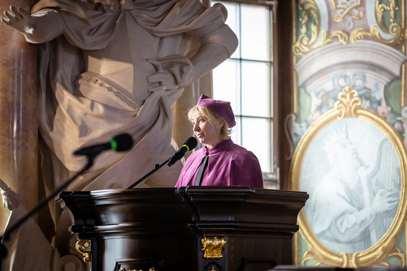 W swoim przemówieniu do zgromadzonej na sali młodzieży prof. Matusz, sama będąc absolwentką Katedry Filologii Niderlandzkiej, podzieliła się własnymi wspomnieniami i doświadczeniami. Podkreśliła nieocenioną wartość wiedzy i kompetencji, nabytych dzięki studiom filologicznym w dzisiejszym świecie, który wymaga od ludzi szybkiej adaptacji do nowych warunków i kultur. Studentom zadała również pierwsze zadanie domowe: przeczytać – ze zrozumieniem i czułością! – przemowę noblowską Olgi Tokarczuk.